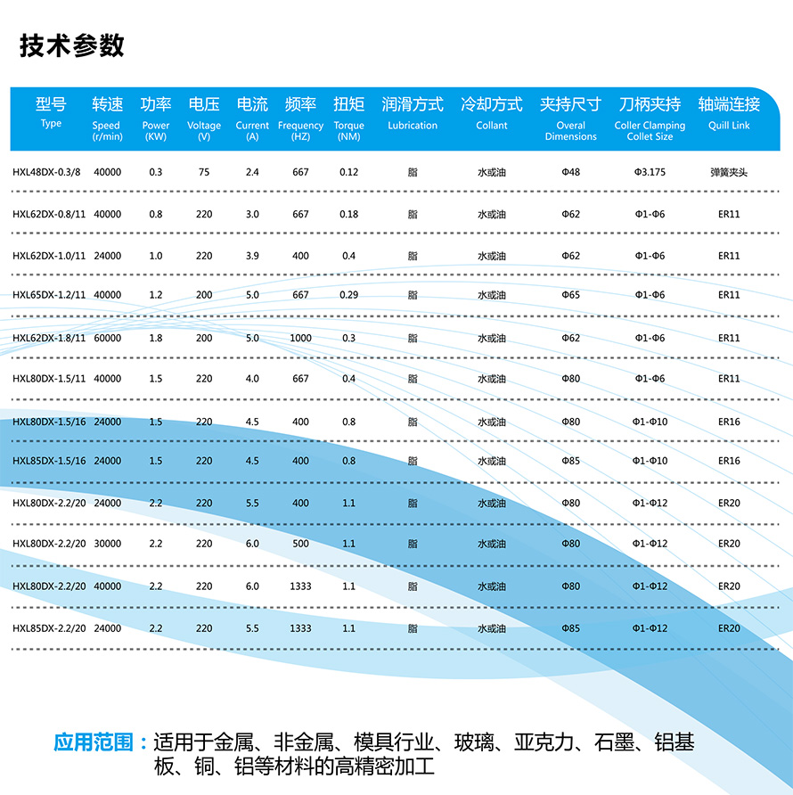適用于金屬,非金屬,模具行業,玻璃,亞力克,石墨,鋁基板,銅,鋁等材料的高精密加工